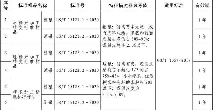 12月1日,國(guó)家糧食和物資儲(chǔ)備局發(fā)布了2020年第4號(hào)通告,公布了《早秈米加工精度標(biāo)準(zhǔn)樣品》等16項(xiàng)行業(yè)標(biāo)準(zhǔn)樣品。