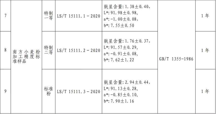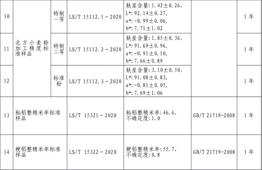根據(jù)通告附件顯示,這16項(xiàng)行業(yè)標(biāo)準(zhǔn)樣品有:早秈米加工精度標(biāo)準(zhǔn)樣品(精碾、適碾)、晚秈米加工精度標(biāo)準(zhǔn)樣品(精碾、適碾)、粳米加工精度標(biāo)準(zhǔn)樣品(精碾、適碾)、南方小麥粉加工精度標(biāo)準(zhǔn)樣品(特制一等、特制二等、標(biāo)準(zhǔn)粉)、北方小麥粉加工精度標(biāo)準(zhǔn)樣品(特制一等、特制二等、標(biāo)準(zhǔn)粉)、秈稻整精米率標(biāo)準(zhǔn)樣品、粳稻整精米率標(biāo)準(zhǔn)樣品、粳米品嘗評(píng)分參考樣品、秈米品嘗評(píng)分參考樣品。