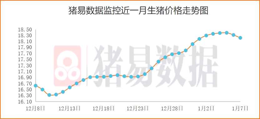 據(jù)豬易數(shù)據(jù)監(jiān)測數(shù)據(jù)顯示,2021年1月07日標準體重生豬平均價格為36.43元/公斤,較昨日豬價下跌0.19元/公斤,跌幅為0.52%,較20年同期36.12元/公斤上漲0.31元/公斤,漲幅為0.86%。