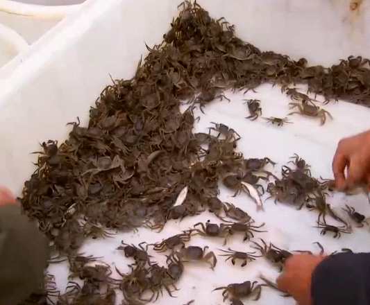 如果這個(gè)時(shí)候,不分公、母,把螃蟹全部打撈起來,對(duì)公螃蟹的損傷很大。老王之前也這么干過,可是一畝塘死了近20斤公蟹,還不如不這么干。