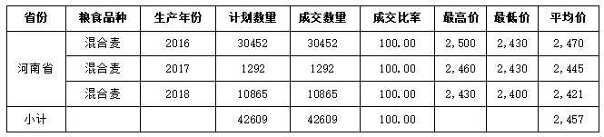 表1第2周河南省國儲銷售交易情況