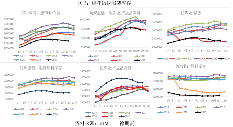 影響紡織企業(yè)庫存的變化的因素主要有中美貿易戰(zhàn)和疫情以及國儲棉的供給側改革,疫情之前的貿易戰(zhàn)從不斷激化到達成協(xié)議,期間我國紡織企業(yè)的成品庫存經歷了從累庫到去庫存的一個過程,很快疫情爆發(fā)后,累庫要降庫存的過程又再度經歷了一遍。