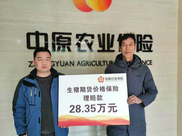 2月9日,河南商報記者從中原農(nóng)業(yè)保險股份有限公司獲悉,由該公司在平頂山試點的生豬“保險+期貨”價格保險理賠落地,共向葉縣、寶豐縣和汝州市三個地區(qū)投保養(yǎng)殖企業(yè)支付理賠款64.80萬元。其中,全國首張生豬“保險+期貨”保單落地的汝州市鼎成牧業(yè)獲賠28.35萬元。