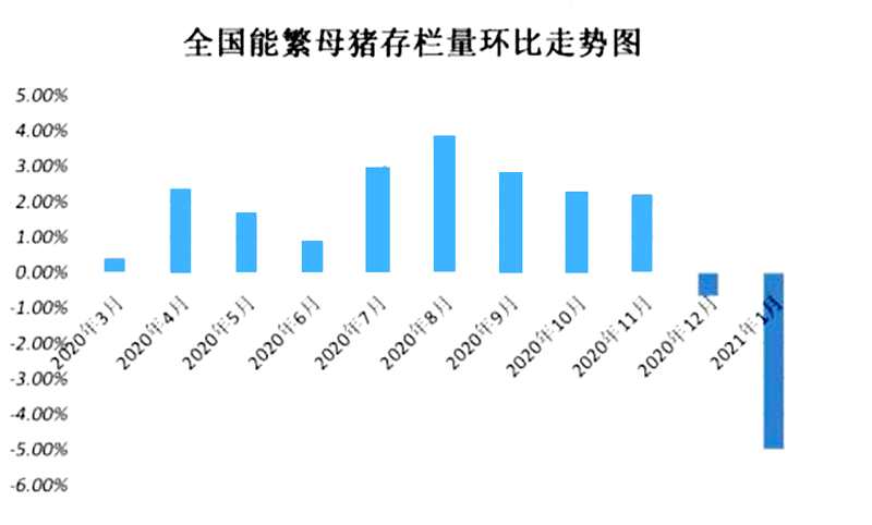 據(jù)行業(yè)機構(gòu)監(jiān)控顯示,進入2020年12月份以及2021年1月份,母豬存欄環(huán)比呈現(xiàn)明顯下行的態(tài)勢,其中,2021年1月份,母豬存欄量環(huán)比下降達到了4.99%!而1月份母豬存欄的產(chǎn)能也將直接影響2021年11月份市場生豬出欄的規(guī)模,直接抑制豬價下行的步伐,也將對2021年11月豬價進一步支撐!