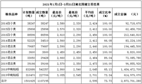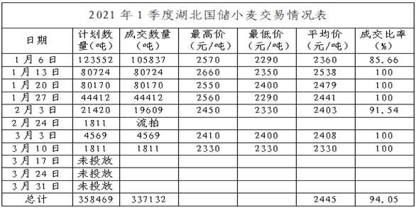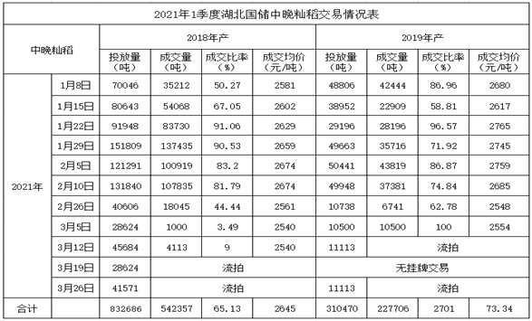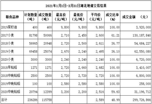 湖北省政策性糧食一季度交易情況分析及二季度情況預測