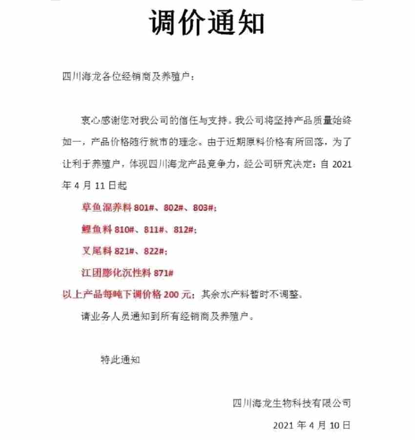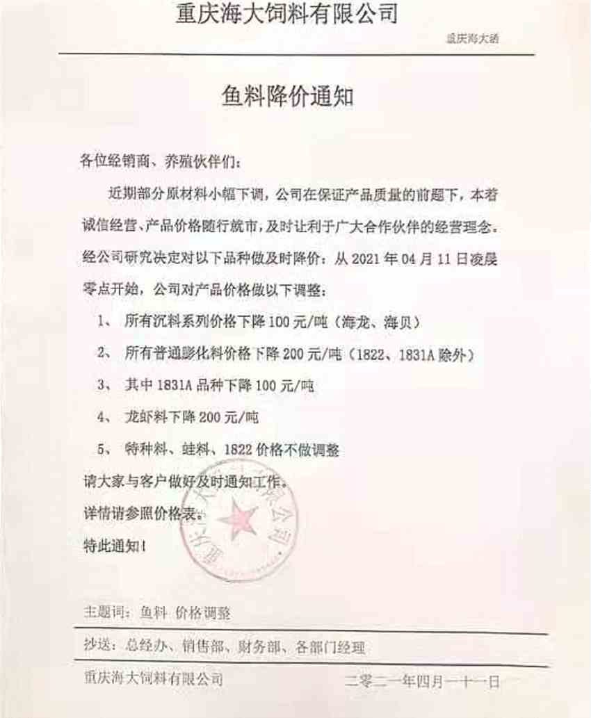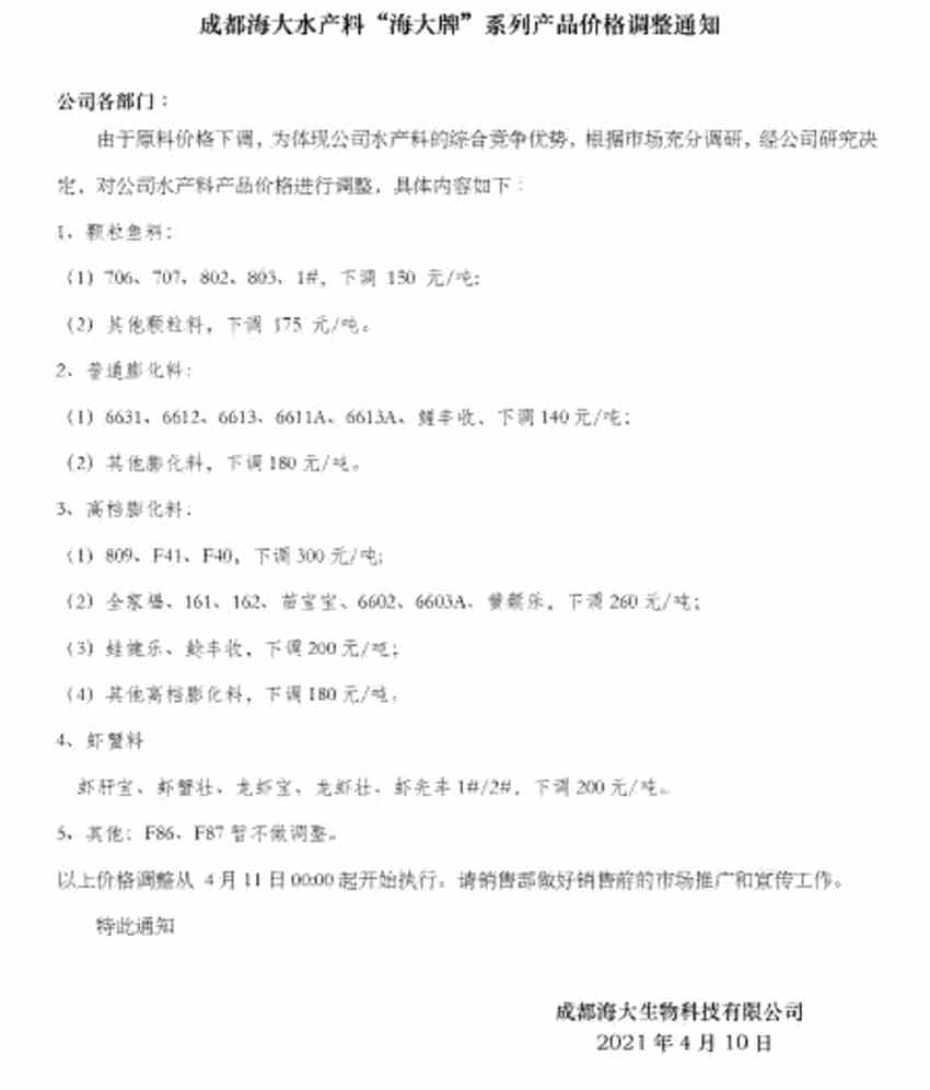 水產(chǎn)料降價(jià)潮要來(lái)了??海大宣布飼料降價(jià),最高下調(diào)300元/噸!