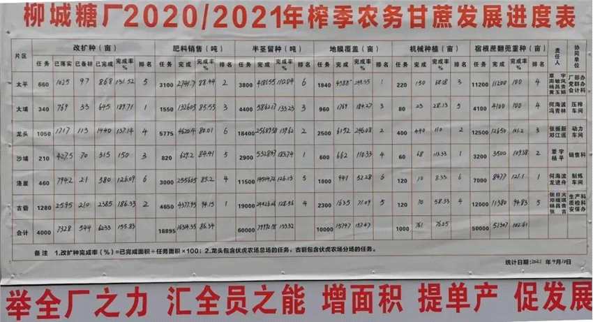 為按時、按質(zhì)、按量完成甘蔗發(fā)展任務(wù),實現(xiàn)“十四五”規(guī)劃期間百萬噸甘蔗進廠的目標,柳城糖廠狠抓甘蔗生產(chǎn)工作不放松,深挖潛力,舉全廠之力,匯全員之能,強化措施,狠抓落實,確保甘蔗生產(chǎn)任務(wù)圓滿完成。