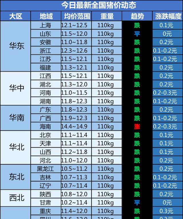 4月19日,全國23個省市豬價下跌,只有海南1省上漲,甘肅、山東2省持平,下跌的幅度,多數(shù)省份在1-2毛錢,超過3毛以上的有:河南下跌2-3毛,豬價11.0-11.5元/斤;重慶上漲3毛,豬價11.4-12.0元/斤;四川上漲3毛,11.6-12.0元/斤;貴州上漲3-4毛,豬價11.6-12.2元/斤。今天全國平均豬價降至23.25元/公斤。