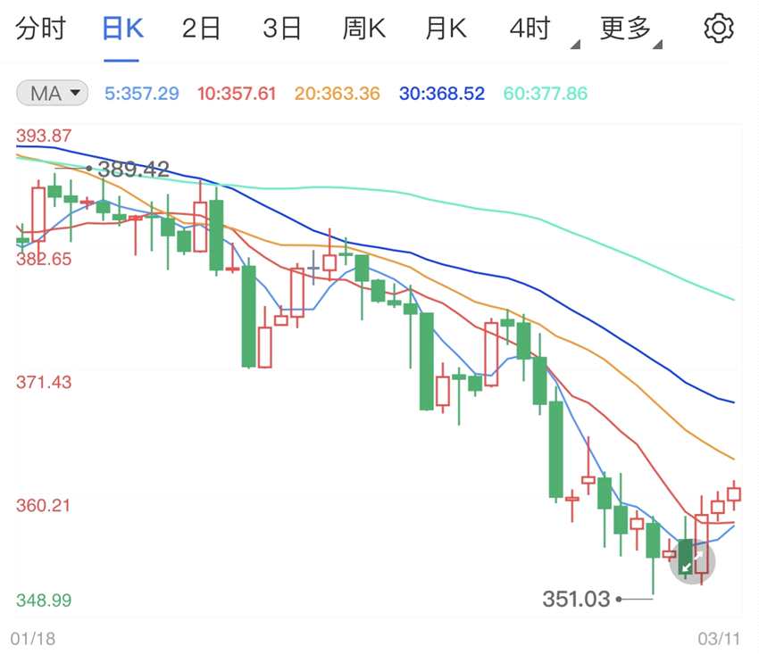 摘要: 目前,紙黃金價(jià)格盤內(nèi)暫時(shí)企穩(wěn)360元/克大關(guān)之上,隔夜金價(jià)大漲,黃金價(jià)格走勢圖日線保持窄幅上漲走勢。
