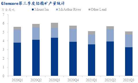 礦企季報:Glencore 2021第3季度鉛精礦產(chǎn)量為5.07萬噸,同比減少16.5%