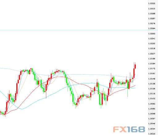 再來(lái)看英鎊,歐市盤(pán)中,小時(shí)圖顯示,英鎊/美元自盤(pán)內(nèi)低點(diǎn)1.3100位置起漲,震蕩上行,繼新聞發(fā)布會(huì)前后,價(jià)格短線拉升50個(gè)點(diǎn),日內(nèi)觸高1.3190,刷新一周來(lái)高點(diǎn)。截至發(fā)稿交投于1.3186。