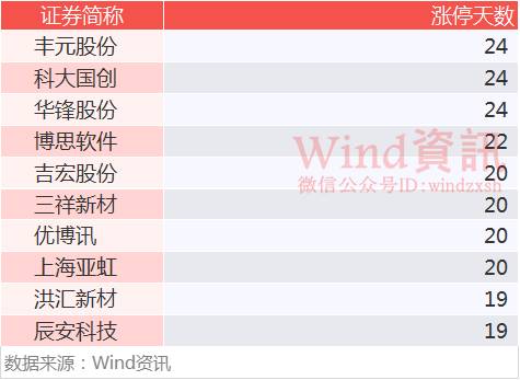 三季度漲停榜毫無意外全是新股、次新股的天下,豐元股份、科大國創(chuàng)、華鋒股份均錄得24個漲停板并列第一。