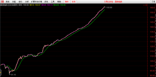 2003年至今,中國國債指數(shù)的長牛走勢是這樣的: