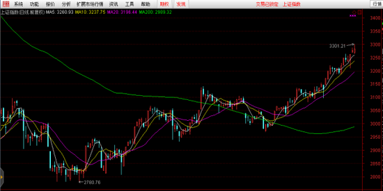 相對于債市嚴(yán)冬,近期上證指數(shù)扶搖直上的走勢是這樣的: