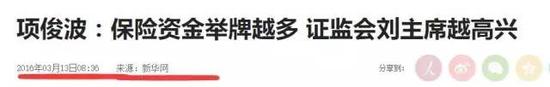 3月份的時候,保監(jiān)會主席項俊波曾經(jīng)說過:談到舉牌的問題,其實舉牌是二級市場普通的股票投資行為,國際上保險資金是重要的機構(gòu)投資者,舉牌越多我們劉主席是比較高興的。