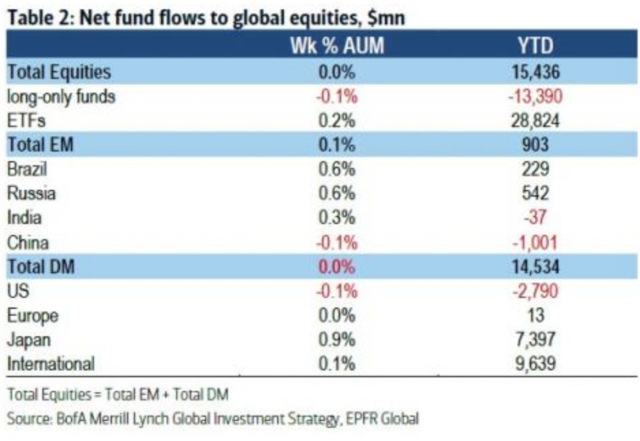 美銀美林最新數(shù)據分析稱,過去一周里,美股資金流出規(guī)模創(chuàng)四個月最大,美債市場資金流入規(guī)模為去年7月來最高。
