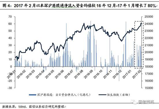 對(duì)于港股而言,我們認(rèn)為這一波上漲主要是來自內(nèi)地機(jī)構(gòu)投資者的年初南下配置力量,2月以來深滬港股通的日均凈流入資金較2016年12月和2017年1月上漲了80%;由于港股的低估值和高股息率的特點(diǎn),中長期來看仍然具有較強(qiáng)的配置優(yōu)勢(shì)。