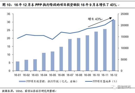 1)1月信貸融資大增,但已被市場(chǎng)預(yù)期,需求主要來自基建項(xiàng)目。1月社融結(jié)構(gòu)中,本外幣信貸融資為2.3萬億,占比62%,其中人民幣信貸為2.3萬億,僅次于2016年1月水平。但是由于此前市場(chǎng)就已預(yù)期1月信貸有望超過16年1月的水平,因此實(shí)際數(shù)據(jù)反而略低于預(yù)期。此外,結(jié)合PPP落地情況來看,16年12月末處于執(zhí)行階段的項(xiàng)目投資額較16年9月末增長了43%,考慮到PPP項(xiàng)目中70%-80%的資金來自銀行信貸,我們認(rèn)為1月新增信貸主要來自于基建項(xiàng)目的融資需求。
