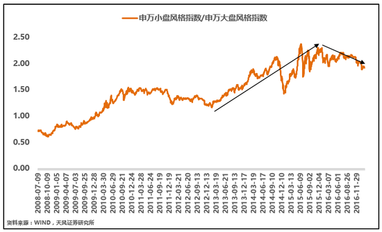 回過頭去看,從13-15年的三年時(shí)間里,市場(chǎng)絕大部分時(shí)候都沉浸在“以小為美”的價(jià)值觀里,小股票趨勢(shì)性的跑贏大股票,而從16年開始,你會(huì)發(fā)現(xiàn),這種價(jià)值觀開始逐漸受到“挑戰(zhàn)”甚至是被顛覆。