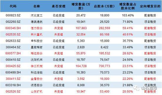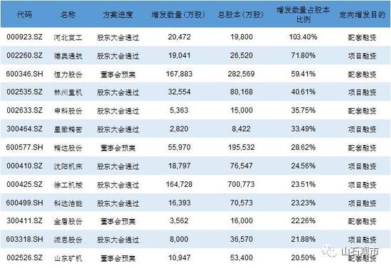 廣發(fā)機(jī)械行業(yè),對(duì)目前未完成定增的公司進(jìn)行了梳理(主要是仍然在股東大會(huì)和董事會(huì)層面的進(jìn)度),增發(fā)數(shù)量占總股本的比例超過20%的公司分別是:河北宣工、德奧通航、恒力股份、林州重機(jī)、申科股份、星徽精密、精達(dá)股份、沈陽機(jī)床、徐工機(jī)械、科達(dá)潔能、金盾股份、派思股份、山東礦機(jī)。其中部分公司雖然方案未得到證監(jiān)會(huì)的通過,但已經(jīng)受理,最終在這13家公司中,方案尚未批復(fù)的公司為:恒立股份、林州重機(jī)、精達(dá)股份、徐工機(jī)械、山東礦機(jī)。