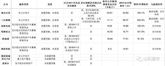 商貿(mào)零售行業(yè),此次新規(guī)直接影響的公司有9家,包括2家非公開發(fā)行(披露預(yù)案,但未受理),4家發(fā)行股份收購資產(chǎn)及配套融資(披露預(yù)案,但未受理),3家處于停牌狀態(tài)(尚未披露具體方案)。另有9家公司已受理/過會(huì)/獲批但未發(fā)行。