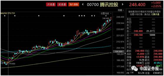 港股市場上,自2016末底部的每股179.6港幣以來,騰訊股價就不斷攀升,在5月2日達(dá)到每股248.4港幣,漲幅接近40%。