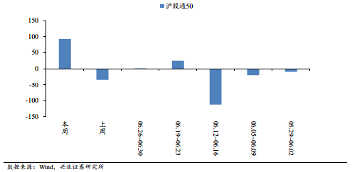 本周凈流出減少,增幅排名前五板塊(本周凈流入資金額、凈流入資金增幅)分別是,滬股通50(92.14億元,365.23 %),證金概念(51.40億元,226.86 %),大央企重組(17.64億元,197.62 %),一帶一路(21.62億元,174.49%),一線(xiàn)龍頭(108.47億元,162.49 %)。