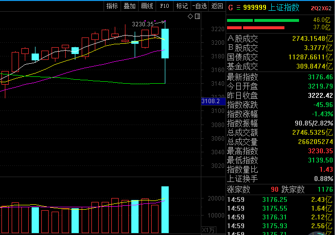 就算是今年頗為驕傲的上證指數(shù),即便今天金融、石油等權(quán)重板塊的反復(fù)暴拉,1266只個(gè)股中,竟然也只有90只個(gè)股上漲,多達(dá)1176只個(gè)股下跌!標(biāo)準(zhǔn)的“一九”行情在上演!