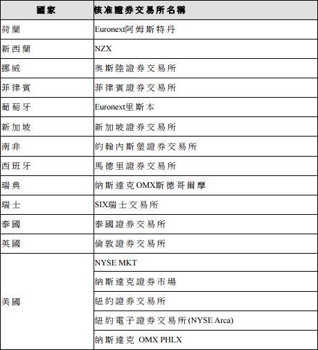 現(xiàn)行核準(zhǔn)港外證券交易所名單一覽表