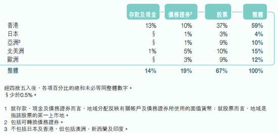 從資產(chǎn)分配的地域分布來看,包括存款與現(xiàn)金、債務(wù)證券及股票等資產(chǎn)類別在內(nèi),中國香港地區(qū)整體占比達(dá)59%,北美地區(qū)和歐洲分別占比達(dá)15%和12%。