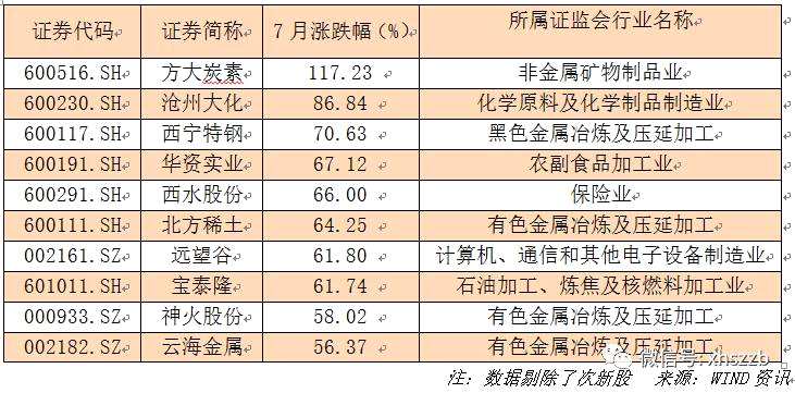 七月十大牛股排行