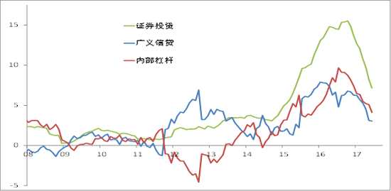 金融去杠桿背景下銀行的證券投資和廣義信貸規(guī)模均已回落(萬(wàn)億)