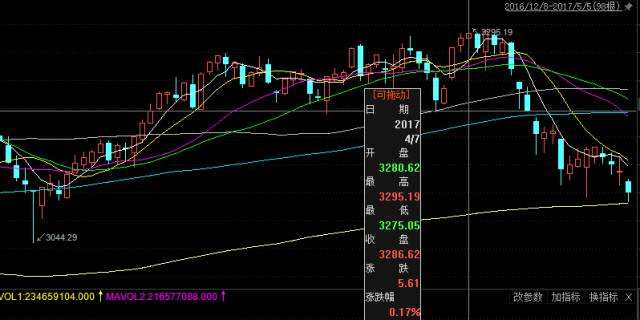 在雄安概念的帶動下,上證指數(shù)再次向3300點(diǎn)發(fā)起沖擊。2017年4月7日,上證指數(shù)一度上攻至3295.19點(diǎn),離3300點(diǎn)僅一步之遙,但雄安概念并未帶動其他板塊走強(qiáng),其后雄安概念也出現(xiàn)了崩盤,闖關(guān)3300點(diǎn)的預(yù)期再次遇阻。