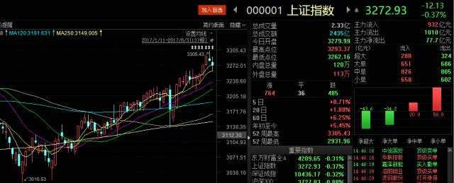 8月2日,早盤和午后分別在銀行和券商板塊的帶領(lǐng)下向3300點(diǎn)發(fā)起總攻,但市場并未展現(xiàn)合力做多的局面,在銀行和券商股拉升之際,保險、工程建設(shè)、石化雙雄、釀酒、家電等權(quán)重股均處于跌勢中,導(dǎo)致滬指兩度觸及3300點(diǎn)之后兩度回落翻綠,盤中最高升至3305.43點(diǎn),成功突破了前期3301和3295高點(diǎn),創(chuàng)出一年半以來新高。但是午后風(fēng)云突變,當(dāng)滬指第二次站上3300點(diǎn)也宣告失利后,市場的做多信心開始瓦解,資源漲價板塊遭到獲利盤的持續(xù)打壓。銀行和券商的強(qiáng)勢也導(dǎo)致資金分流,中小創(chuàng)題材跌幅加速,最終滬深指數(shù)雙雙收綠。