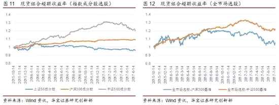 我們采用目前市場上尚處于運行狀態(tài)的公募指數(shù)增強基金(按照等權(quán)重配置),來擬合相對于基準指數(shù)的現(xiàn)貨組合超額收益率。此外,我們還采用了目前公募市場尚處于運行狀態(tài)的大數(shù)據(jù)量化基金的凈值數(shù)據(jù)擬合了一個全市場選股的現(xiàn)貨組合(按照等權(quán)重配置,另大數(shù)據(jù)基金基本為滿倉操作,一般按照多因子選股框架定期篩選數(shù)量固定的個股,因而可以將其作為現(xiàn)貨組合的代表),并基于滬深300指數(shù)與中證500指數(shù)模擬現(xiàn)貨組合的超額收益率。