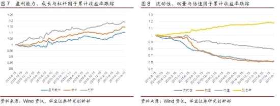 為動態(tài)監(jiān)測各風格因子的輪動特征, 我們繪制了各風格因子歷史累計收益率的走勢圖。整體來看,高盈利能力與高成長性趨勢更加顯著,其他因子仍基本延續(xù)前期形成的長期趨勢,未出現(xiàn)明顯的反轉(zhuǎn)或趨勢增強現(xiàn)象。