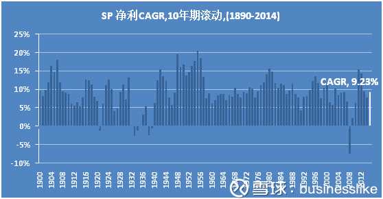 標(biāo)普1890-2014,10年期滾動凈利增長率。