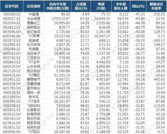 作為機構(gòu)動向的觀察指標(biāo),除了各類機構(gòu)的持股數(shù)外,股東人數(shù)增減也值得關(guān)注。剔除今年以來上市的新股,半年報顯示股東人數(shù)較上一季報減少的有1563只個股,幾乎近半。其中,股東人數(shù)大幅下降30%以上的有28只個股(見下表),中富通(300560)、德美化工(002054) 、創(chuàng)新股份(002812)、安記食品(603696)等5只個股的股東人數(shù)下降幅度超過了40%??梢钥吹剑@些個股大都呈上升通道態(tài)勢。