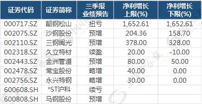 A股鋼企三季報業(yè)績預(yù)告一覽