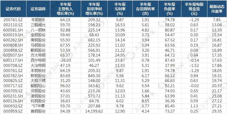 最新動態(tài)市盈率低于30倍的鋼鐵股一覽