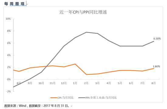 CPI及PPI增長(zhǎng)超預(yù)期顯示需求穩(wěn)定。國(guó)家統(tǒng)計(jì)局9日公布2017年8月份CPI及PPI,漲幅均較上個(gè)月擴(kuò)大。CPI同比由上個(gè)月的上漲1.4%擴(kuò)大致1.8%,其中受天氣因素影響,食品價(jià)格下降幅度從上個(gè)月的-1.1%明顯收窄至-0.2%。今年以來CPI受食品價(jià)格同比下跌因素影響維持溫和上漲,近幾個(gè)月以來食品價(jià)格較1季度的明顯下跌以逐步回穩(wěn),預(yù)期下半年CPI總體仍將維持平穩(wěn)。PPI在國(guó)內(nèi)需求及環(huán)?;榈碾p重影響下近期漲幅超過預(yù)期,但在基期因素及去產(chǎn)能邊際影響逐漸消退之下,預(yù)期下半年仍將逐步放緩。