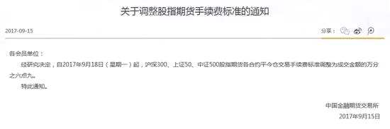 此前股指期貨各合約平今倉(cāng)交易手續(xù)費(fèi)標(biāo)準(zhǔn)為成交金額的萬(wàn)分之九點(diǎn)二。