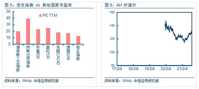 橫向?qū)Ρ?,香港依舊是全球最便宜的市場(chǎng),美股標(biāo)普500的市盈率在23x(TTM),納斯達(dá)克市盈率在39x,英國法國德國主要股指的估值分別為17-24x之間,而這些國家股指對(duì)應(yīng)的盈利增速也只有2%-10%。 新興市場(chǎng)的代表,如印度韓國的市盈率分別是23x和15x(盈利增速也只有7-9%),所以全球?qū)Ρ雀酃梢琅f不貴;從內(nèi)地資金角度,相對(duì)于A股,H股依舊有20%左右折價(jià)。