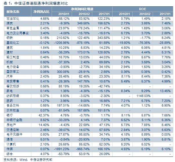 剛結(jié)束的2017年中報(bào)表明,港股盈利增速確定觸底反彈,結(jié)束了自2011年以來增速整體呈下降的趨勢(shì)。2017年上半年,恒生指數(shù)凈利潤同比增長11.5%,均好于前兩年的-4.8%和-7.6%,其中非金融板塊增速近50%。如果以港股通作為全樣本,港股整體凈利潤同比增速達(dá)13%,其中非金融板塊凈利潤增速40%左右。