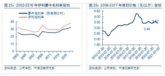 龍頭企業(yè)充分受益于行業(yè)競(jìng)爭(zhēng)格局改善。伊利低線渠道滲透和深耕最具優(yōu)勢(shì),產(chǎn)品管理營銷一慣優(yōu)秀,有望在本輪景氣復(fù)蘇中搶占高地,最大收益行業(yè)景氣提升和龍頭市占率提升。蒙牛乳業(yè)邊際改善顯著:1.管理端新管理層理順業(yè)務(wù)結(jié)構(gòu),調(diào)整組織架構(gòu);2.產(chǎn)品端加強(qiáng)與達(dá)能合作,引進(jìn)達(dá)能新產(chǎn)品;3.渠道端推進(jìn)渠道扁平化改革;4.上游整合現(xiàn)代牧業(yè)下游業(yè)務(wù),增強(qiáng)協(xié)同。預(yù)期現(xiàn)代牧業(yè)和雅士利業(yè)績(jī)改善、事業(yè)部、渠道扁平化改革均將助力蒙牛業(yè)績(jī)彈性。