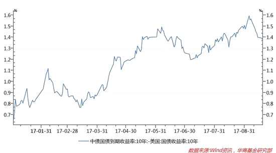 另一方面,隨著縮表的落地,美國國債收益率出現(xiàn)了進(jìn)一步的上行,今年下半年以來,從10年期國債收益率的角度看,中美利差整體呈現(xiàn)區(qū)間震蕩格局,9月以來美債的明顯弱勢,使得中美利差短期快速收窄。華商基金張博煒表示,中美利差也是約束債市行情的重要因素之一,美聯(lián)儲(chǔ)的縮表信號(hào)可能也會(huì)使得國內(nèi)債市承受一定壓力。