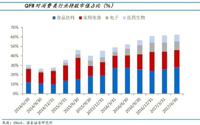報告指出,消費類行業(yè)是我國具有本土優(yōu)勢的行業(yè),白酒等細(xì)分行業(yè)同時還具有一定的全球稀缺性,配置消費類行業(yè)契合QFII的全球資產(chǎn)配置策略。