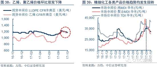 ???中游制造:10月各類鋼材價格環(huán)比下降,鐵礦石價格大幅下降,鋼材毛利率上升,庫存增加。10月水泥和玻璃價格均延續(xù)漲勢。工程機械價格保持穩(wěn)定,除推土機和裝載機外,其他機械銷量大幅上升,挖掘機銷量增長20%以上?;ぴ戏矫?,乙烯和聚乙烯價格環(huán)比上升,滌綸短纖價格增速下滑,純堿價格增速下滑。