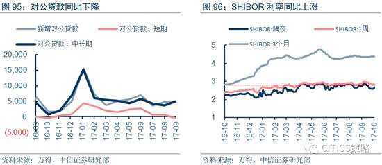 ?銀行:量上來看,9月新增人民幣貸款1.27萬億,同比上升4.10%,增速下滑,居民短期貸款同比大幅提高。對公貸款方面,9月,新增對公人民幣貸款為4635億元,同比下降25.45%。其中,短期貸款-521億元,同比大幅下跌近20倍;中長期貸款5029億元,同比上升12.61%。價格方面,截止10月23日,SHIBOR隔夜、一周、一年利率分別為2.6160%、2.8341%、4.3793%,利率較去年同期大幅上升。