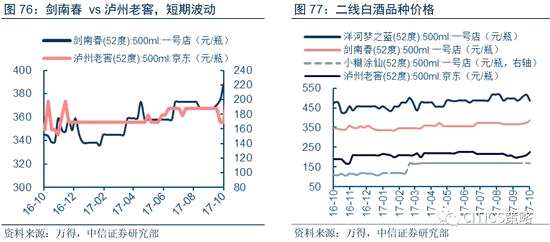 白酒方面,一線白酒價格環(huán)比基本維持原位,同比不同程度上升,瀘州老窖價格環(huán)比下降。截至10月23日,一號店數據顯示,一線白酒價格繼續(xù)維持原位,53度飛天茅臺價格為1299元/瓶,價格3個月內保持穩(wěn)定,同比上漲18.2%;52度五糧液(000858)價格969元/瓶,環(huán)比不變,同比上漲16.9%。52度小糊涂仙價格168元/瓶,環(huán)比不變,同比上漲54.3%,52度瀘州老窖價格228元/瓶,環(huán)比上升15.2%,同比上漲21.3%。